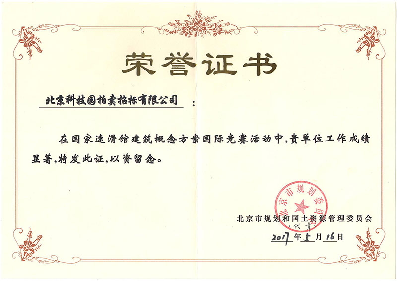 2022年國家速滑館建筑概念方案國際競賽榮譽(yù)證書