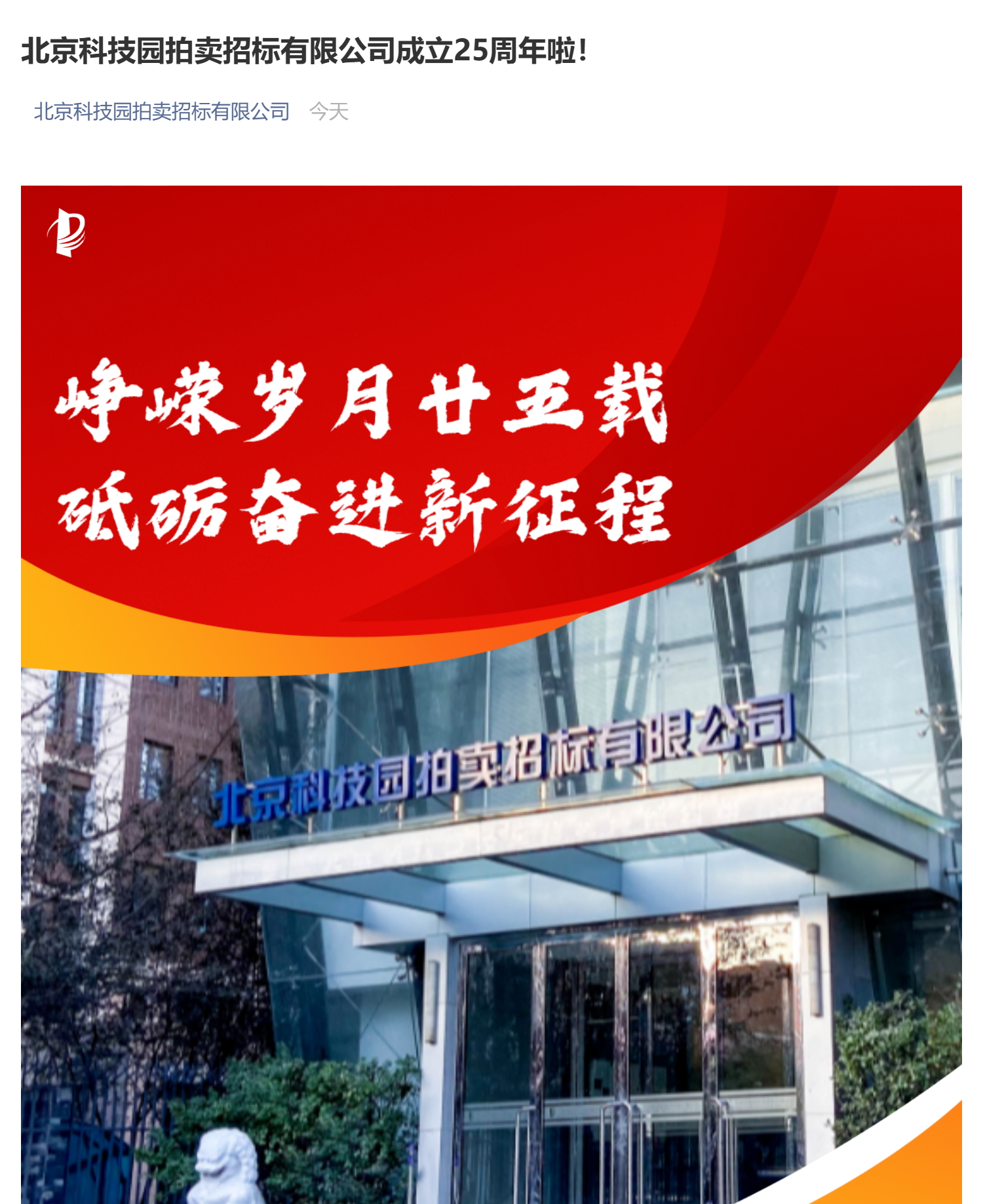 崢嶸歲月廿五載砥礪奮進(jìn)新征程——熱烈慶祝北京科技園拍賣招標(biāo)有限公司成立25周年