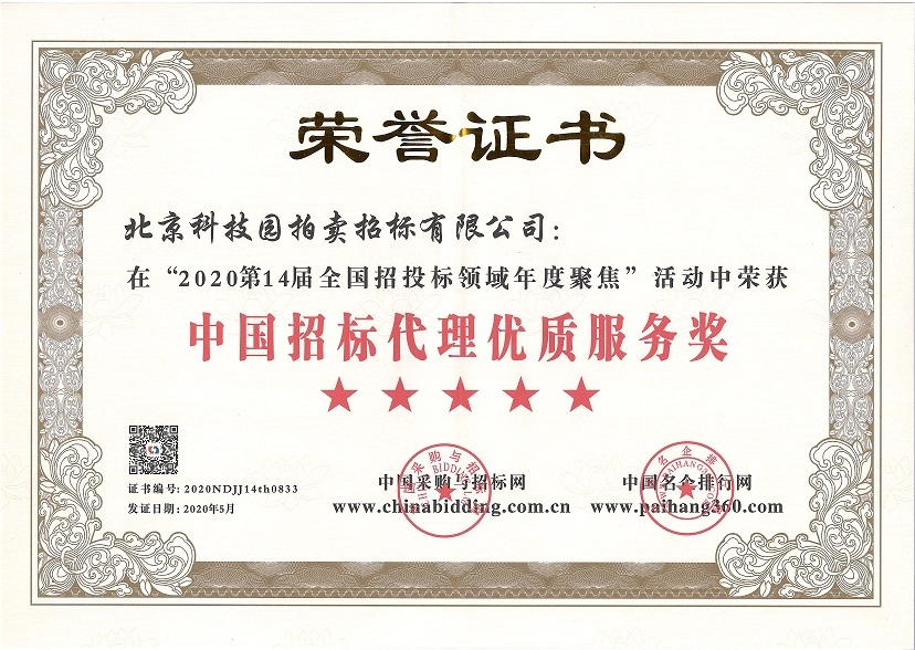 2020第14屆全國招投標(biāo)領(lǐng)域年度聚焦“中國招標(biāo)代理優(yōu)質(zhì)服務(wù)獎(jiǎng)”