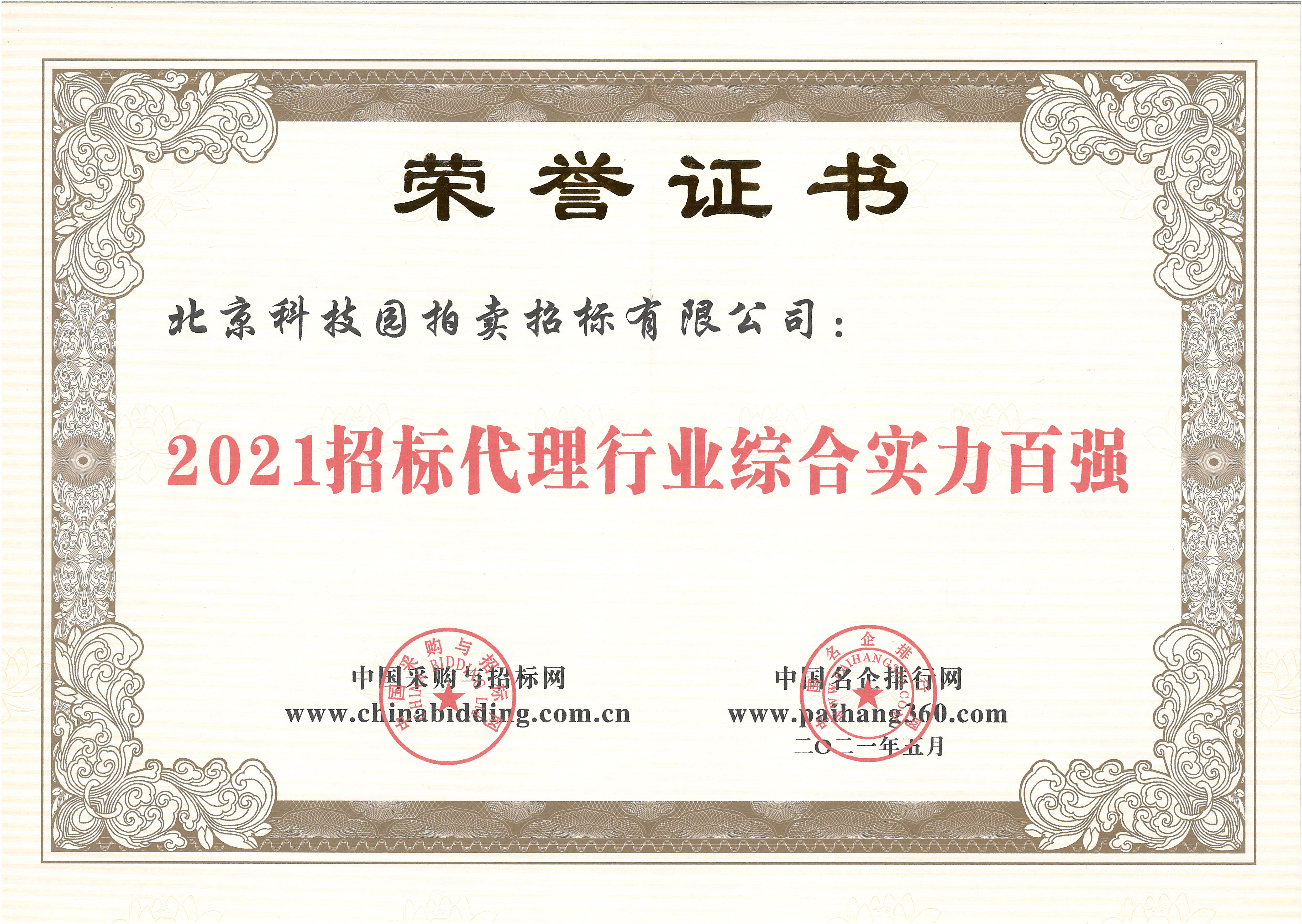2021年招標(biāo)代理綜合實力百強(qiáng)