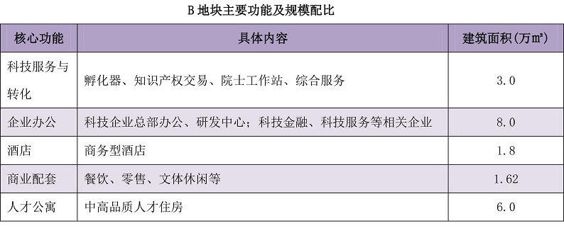 核心功能:科技服務與轉化、企業(yè)辦公、酒店、商業(yè)配套、人才公寓。