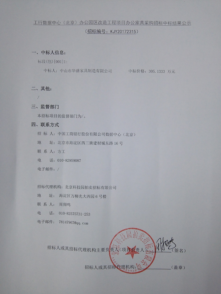 工行數(shù)據(jù)中心(北京)辦公園區(qū)改造工程項目辦公家具采購招標(biāo)中標(biāo)結(jié)果公示