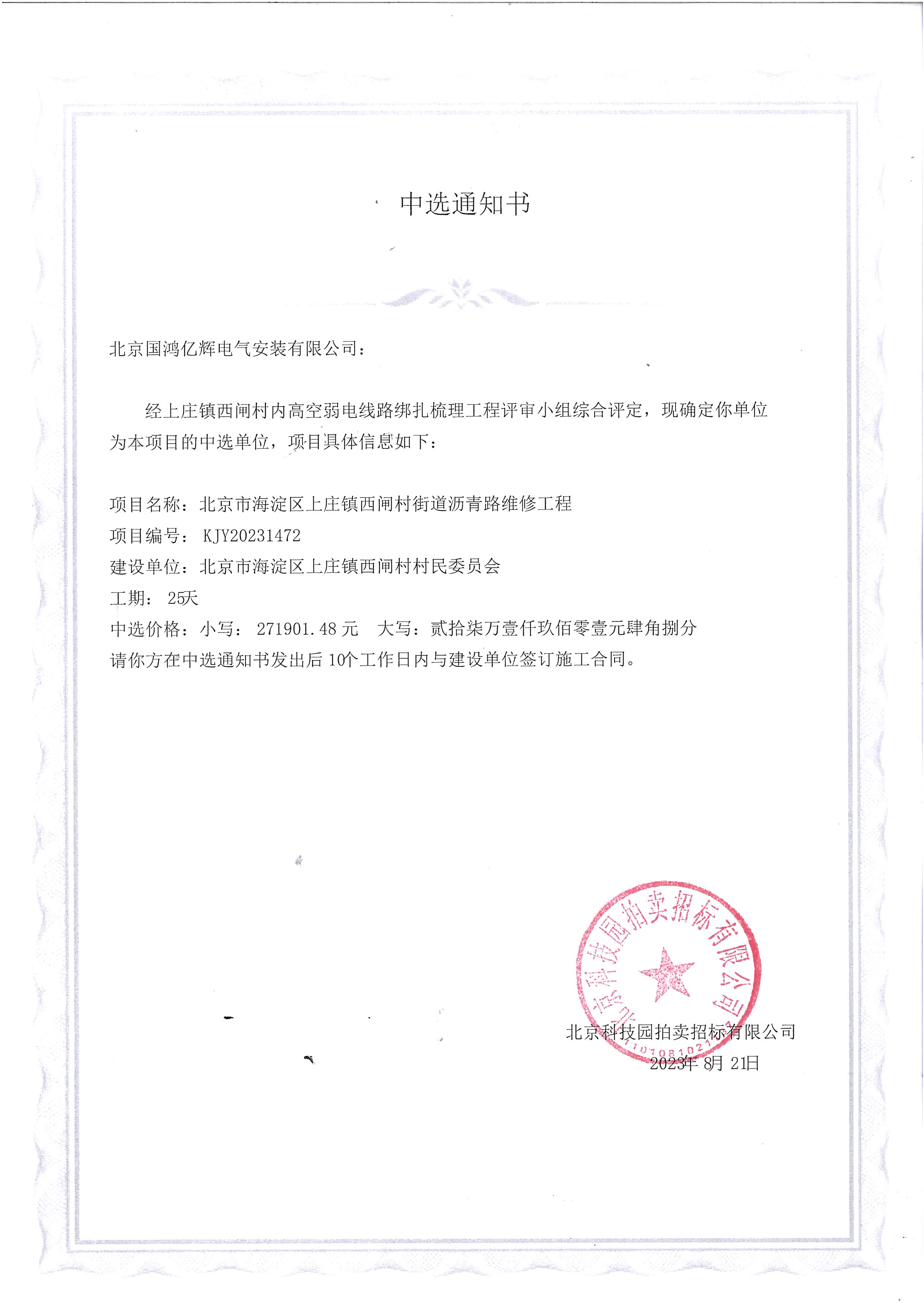 中選單位:北京國(guó)鴻億輝電氣安裝有限公司