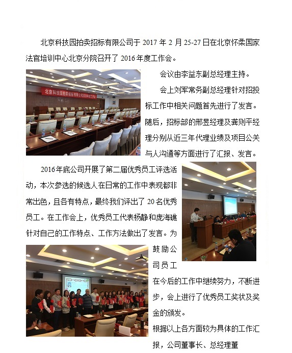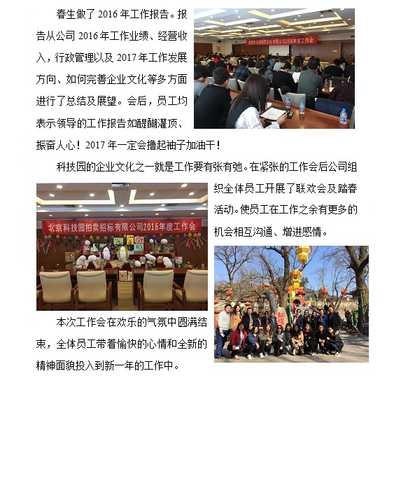 北京科技園拍賣招標(biāo)有限公司2016年度工作會簡報
